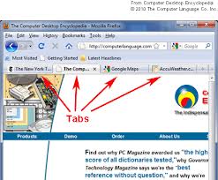 The example above shows tabbed browsing using Mozilla. Three web pages are open; each page’s title is displayed in a tab at the top of the browser. Clicking from tab to tab allows the user to view several web pages without having multiple windows open.